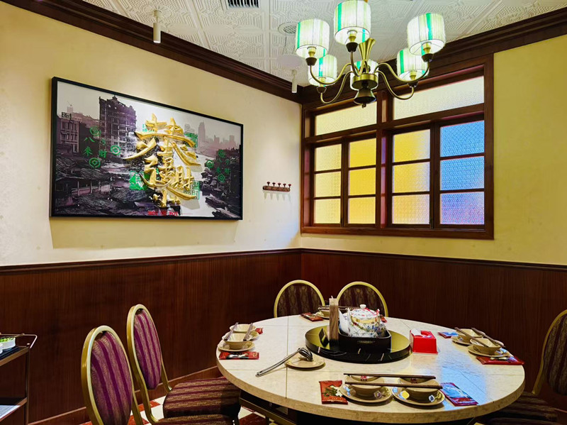 一脚踏进包房,80年代的豪华感瞬间把人裹住。水晶吊灯亮得晃眼,木质家具摸着手感厚重,连小摆件都透着老时光的精致,“复古”不是挂在墙上的字,是坐在这儿就有的踏实贵气。更有意思的是这儿的仪式感——刚坐下,一句“吃总财,当总裁,发大财”就送到耳边,不是虚头巴脑的客套,是热热闹闹的好彩头,听着就觉得这顿饭,好运先来了一半。