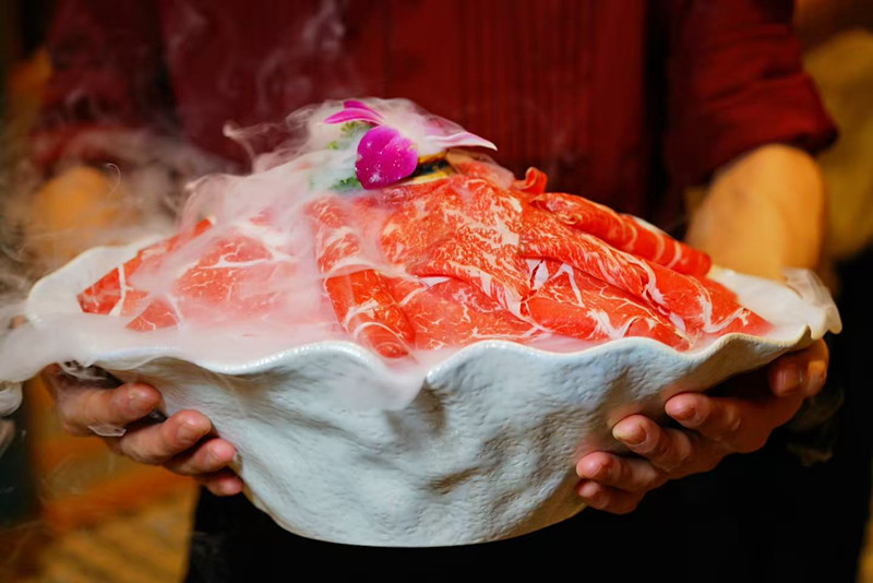还有海鲜拼盘堆得像小山,M7和牛下锅几秒就香得流油