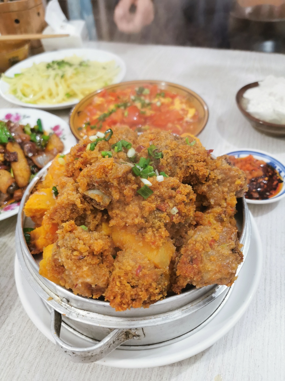 豆花饭配几个乡野菜,吃起来很香。