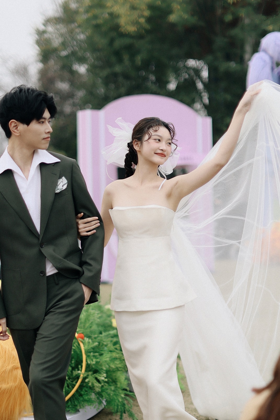 现场多家媒体朋友及众多备婚新人受邀出席,司仪携毛孩子伴郎一同上台,在众人的欢呼庆祝下,以一场可爱爆棚的“狗狗婚礼仪式”拉开此次婚礼秀的帷幕。阳光肆意挥洒,在酒店草坪上,伴着欢快的音乐,身着OUI Bridal高级定制婚纱的模特们,灵动活泼如乐符般跳跃在由色彩构建的开阔空间里,展现了西式婚纱的纯洁细腻。更加彰显出美利亚酒店品牌的松弛生活态度,对一切万物的无限包容。得天独厚的自然环境,映着湖光山色的波澜光影。