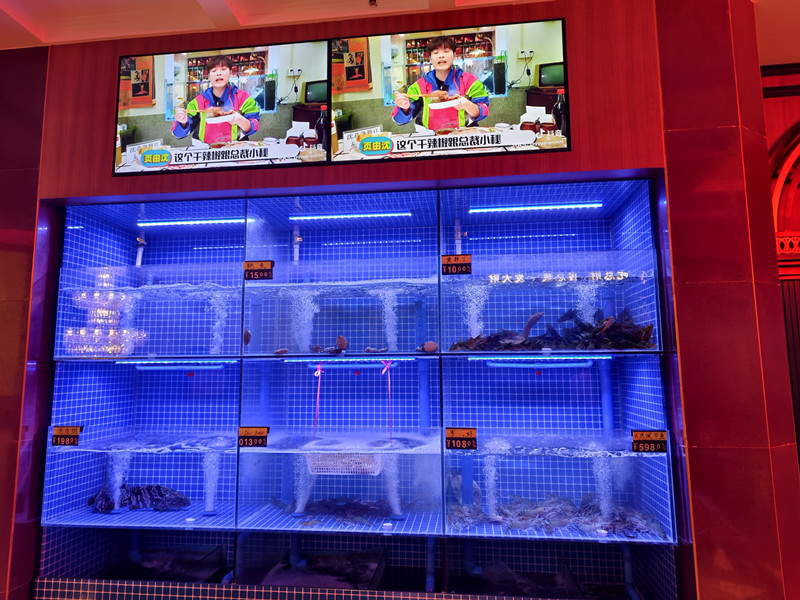 在总财,“新鲜”是能看见、能摸着的。明档厨房里,厨师清洗、切菜的动作清清楚楚,没有一点藏着掖着;旁边的明档海鲜池更有意思,螃蟹横着走,虾子蹦蹦跳,刚捞出来的海鲜还带着水珠子,鲜不鲜一眼就知道。